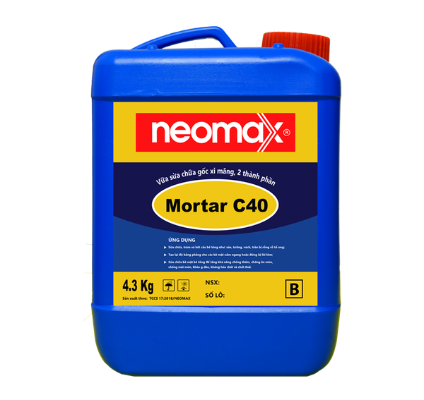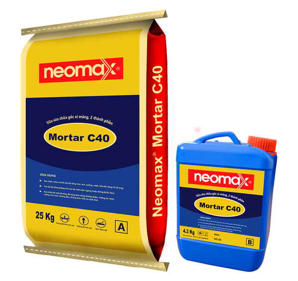 Neomax® Mortar C40 là vữa sửa chữa, trám vá bê tông, 2 thành phần. Sản phẩm là sự kết hợp giữa thành phần A dạng bột được tổng hợp từ xi măng, cốt liệu khoáng, phụ gia đặc biệt và thành phần B dạng lỏng được tổng hợp từ polyme cải tiến.